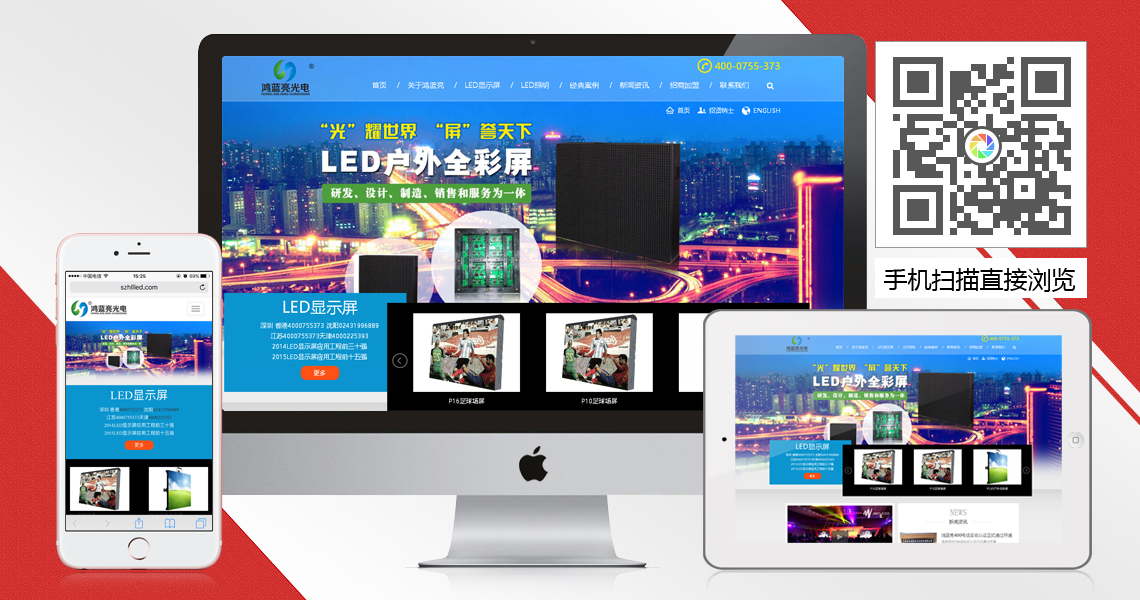 鸿蓝亮光电营销体系由国内贸易中心、国外贸易中心、营销中心三个部分组成,形成了以销售、市场、商务、售后为主体的强大的“以客户为中心”服务执行团队,公司对外的宣传口号"选LED全彩显示屏,对比过鸿蓝亮光电您再下决定"。